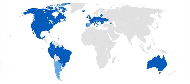 Страны о Голодоморе: синий – признавшие Голодомор геноцидом, голубой – признавшие Голодомор как акт истребления людей.