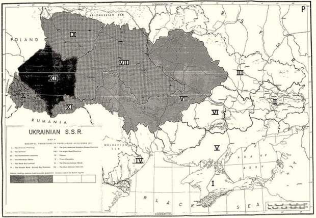 Выводы из провалов Belladonna и Aerodynamic англосаксы сделали. Поставив на паузу подготовку крупных вооруженных акций на территории Украины, они занялись стратегическим изучением театра психологической войны и будущих военных действий. В результате Джорджтаунский университет по заказу ЦРУ разработал так называемую «карту лояльности» населения Украины к «американским силам вторжения». В подготовленном в августе 1957 г. ЦРУ докладе «Факторы сопротивления и зоны действий специальных войск США. Украина» территория советской республики была поделена на 12 зон. По мнению аналитиков, с точки зрения «исторических особенностей, религиозной предпочтительности и вероисповеданий», Крым (зона 1), Донбасс (зона 2), северо-восточный район Украины (зона 3) являются «русскими островами в украинском море и, следовательно, отождествляют себя с российскими интересами и советской властью».18 В том же ключе, хотя с определенными оговорками, они оценивали ситуацию в зонах 4–7 (Одесская область, Причерноморская низменность, Днепропетровская и Запорожская области, Левосторонний и Северный степной районы).