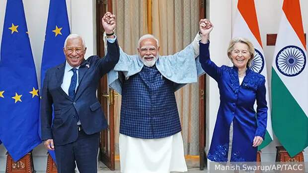 Европа и Индия завершили 20-летнюю работу над соглашением о свободной торговле. Ожидается, что итоговый документ будет принят уже в 2027 году, а его положения позволят значительно нарастить благосостояние обеих сторон. По мнению экспертов, договориться Брюсселю и Нью-Дели помогла агрессивная торговая политика Вашингтона. Что это означает на практике и как соглашение между Брюсселем и Дели отразится на интересах России в Индии?